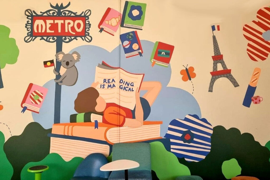 Quelle joie de voir la fresque bilingue, cofinancée par l’EFM, enfin achevée dans la bibliothèque des enfants. Que cette œuvre inspire leur imagination en français et en anglais, et leur ouvre de nouvelles portes vers la créativité et la découverte.